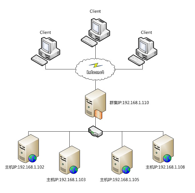 其实这个这概念就是我们平时讲的负载均衡,这样子不会让一台服务器跑死,其它服务出现空闲的情况,最近公司的服务器情况是这样子的,一到周末所有的服务器感觉都有跑死的情况,而平时服务器又只能跑一半的流量,为此参考了很多资料,在Windows Server 2008 R2当中,存在着 “网络负载平衡” 功能 (简称 NLB, Network Load Balancing),它以TCP/IP 为基础的服务,可以将一个已注册的IP地址映射到多个内部域的IP地址当中,让多台主机为同时对网络请求作出反应。