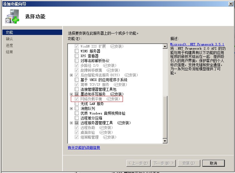若服务器需要使用IIS或者ASP.NET,那么在安装 NLB 前建议先添加Web服务器(IIS)服务器角色和 .net framework 3.5 功能