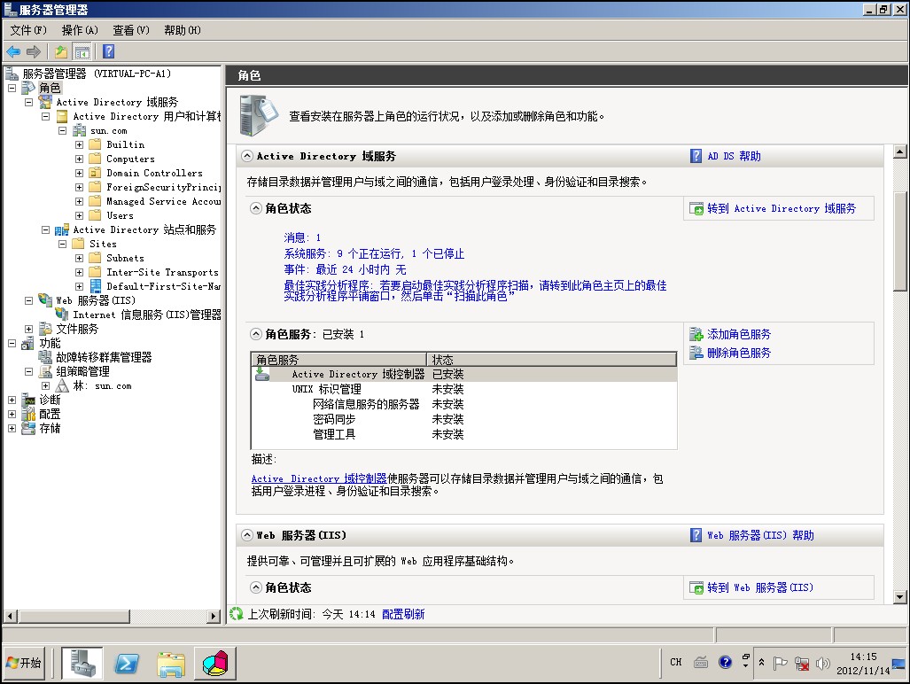 5.1.如果需要使用“域”服务,一般在安装 “网络负载平衡” 管理器前,先添加“Active Directory 域服务” 角色,并进行林、域配置。