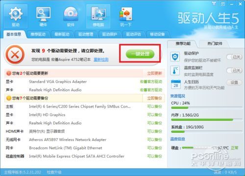 当符合心意的新机买回装好系统后,大家就要开始考虑驱动匹配的问题啦。不过大家不用着急,驱动人生可以帮你一键搞定驱动问题哦!用户装好系统后,可以打开驱动人生5检测检测电脑各硬件设备的驱动安装使用情况!如果有使用异常,可以根据自身的实际情况和驱动人生5的提示对电脑里相对硬件的驱动进行安装或更新,简单一键即可完成从驱动下载到安装的全过程,轻轻松松让驱动问题不再困扰你!