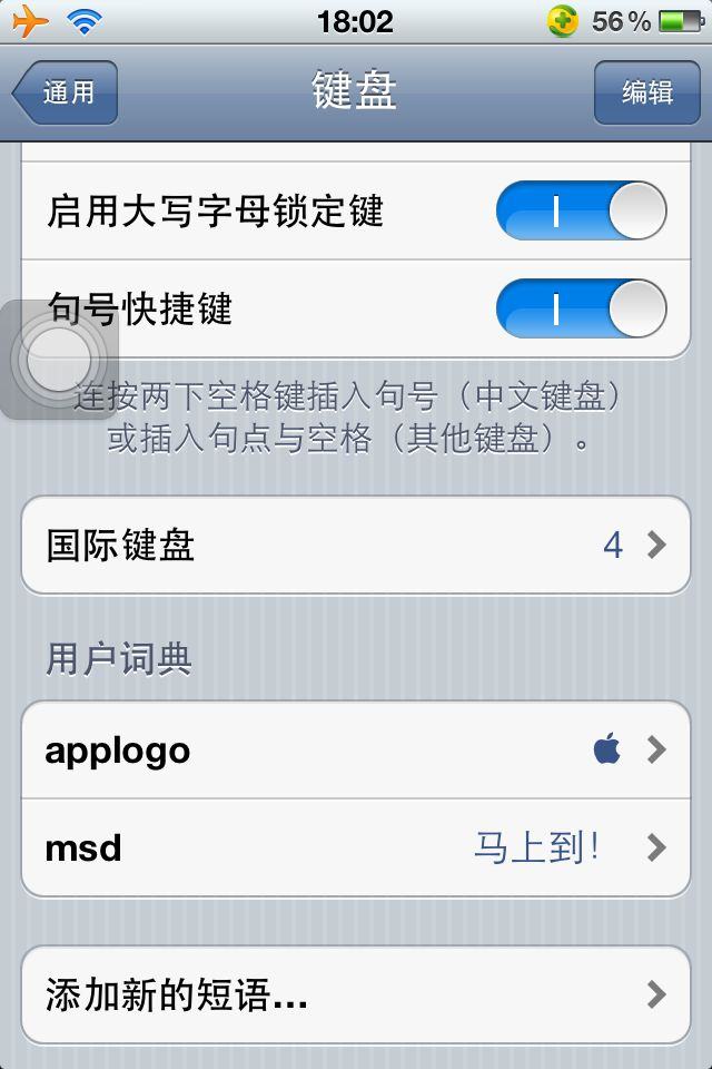 无论你越不越狱,都可以实现!仅支持iOS4.0以上版本的原生系统输入法。