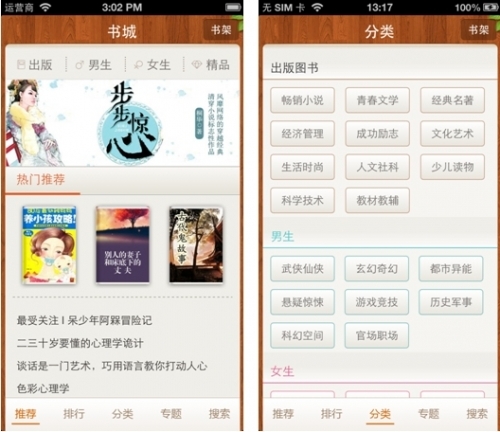 新版的书城,提供了更丰富的频道和内容分类,首页增加出版、男生、女生频道,让你的选择更加方便快捷。内容上也更加丰富,书城的好书、热书都会一目了然,更方便大家发现好书,读好书。
