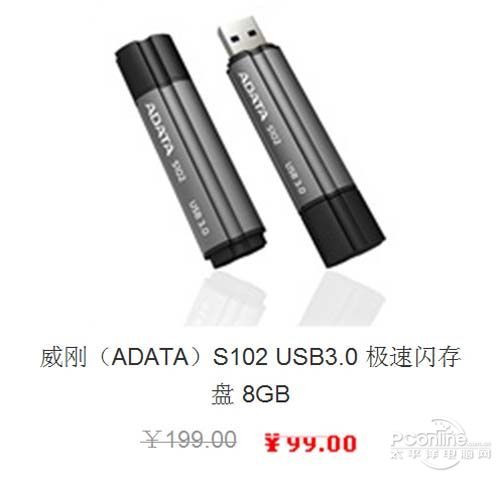 采用USB3.0接口的主流8G容量U盘仅需¥99