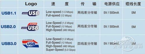 USB3.0是INTEL联合几大IT行业领导厂商于2008年11月正式发布的新技术规范,采用全双工双向高速串行数据传输,支持异步传输模式,其理论数据传输率最高达5Gb/s,是上一代接口标准USB2.0的十倍之多,也大幅领先于eSATA接口3Gb/s的数据传输率。换算成更容易理解的数据就是,在每秒高达600MB的传输率支持下,一个采用USB 3.0的闪存驱动器可以在3.3秒钟将1GB的数据转移到一个主机,而USB 2.0则需要33秒,传输一个25GB的高清电影仅需70秒,而传统的USB 2.0移动硬盘却要14分钟。