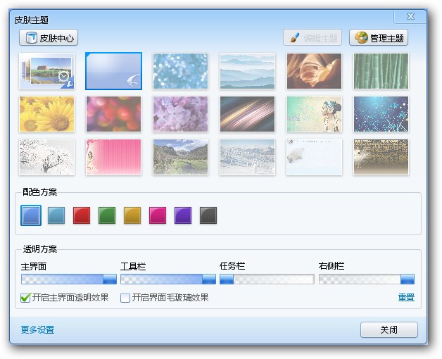 10、采用新设计的“皮肤主题”面板,“工具栏、右侧栏”支持透明及毛玻璃效果