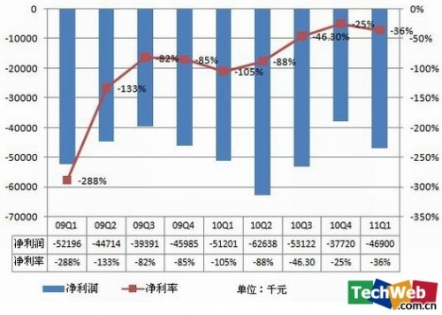非美国通用会计准则的经调整除息、税、折旧及摊销前亏损(EBITDA)为人民币3000万元(460万美元),较之于2010年同期有19%的改善。