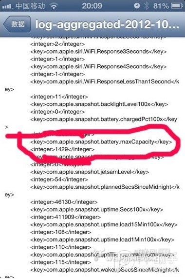 相信很多使用iphone5的朋友都知道在越狱后安装batterydetective等插件可以查看电池最大容量。可是没有越狱能不能查看到呢?今天小编及为大家介绍一种不越狱也能查看电池最大容量和健康度的方法!
