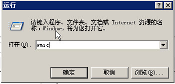 2 然后我们在 “运行”里面输入“wmic”并回车 (注意:第一次使用会出现“正在安装WMIC”的字样,一会就可以进入了。