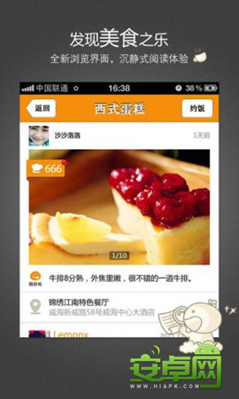 经常为去哪吃饭纠结的朋友,你们现在就不用纠结啦,只需要轻轻点击鼠标下载这款应用,就可以跟大批吃货们一起分享美食的快乐哦!