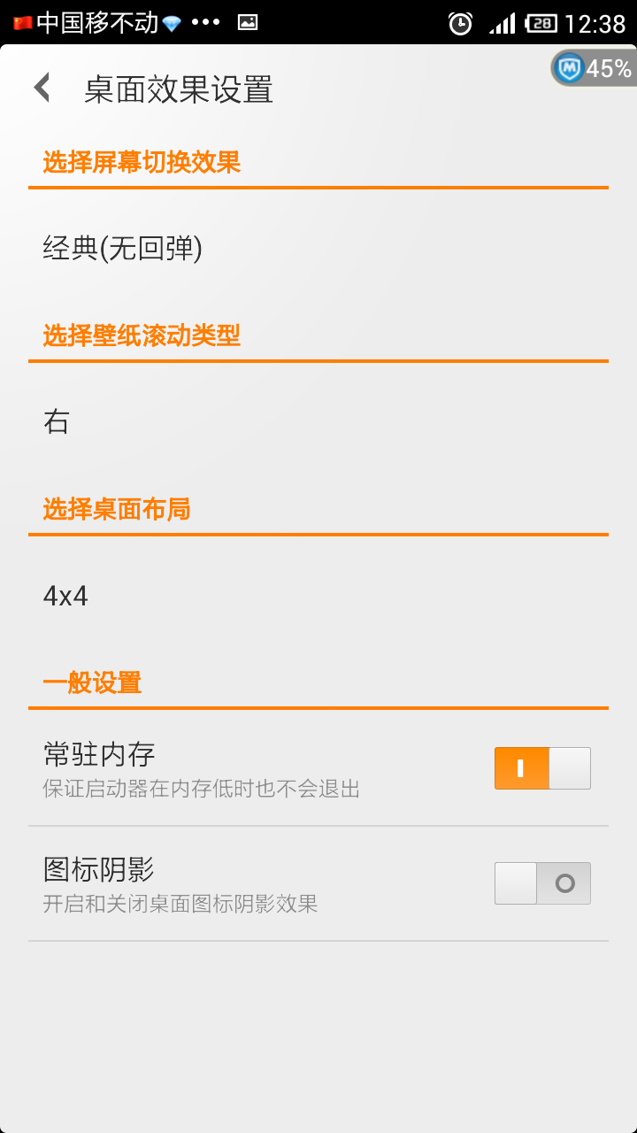 步骤四、然后点菜单键,选择“桌面效果”,根据选取相片的情况,在“选择壁纸滚动类型”,中选左、右、中等显示方式。