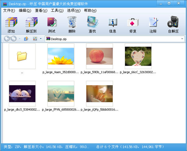 对于一个图片压缩包,有时候我们会需要其中的一张或者数张图片。这时很多人采取的方法都是把压缩包整个解压,然后再寻觅自己所需的图片。好压提供了缩略图方式预览图片,而不需要解压缩这些文件。在一个压缩文件内如果有任何图像,用户就可以通过好压的缩略图的方式浏览它们,不需要从压缩档内解压缩这些图像。这使得在包含图像的压缩文件内工作时更容易和快速。