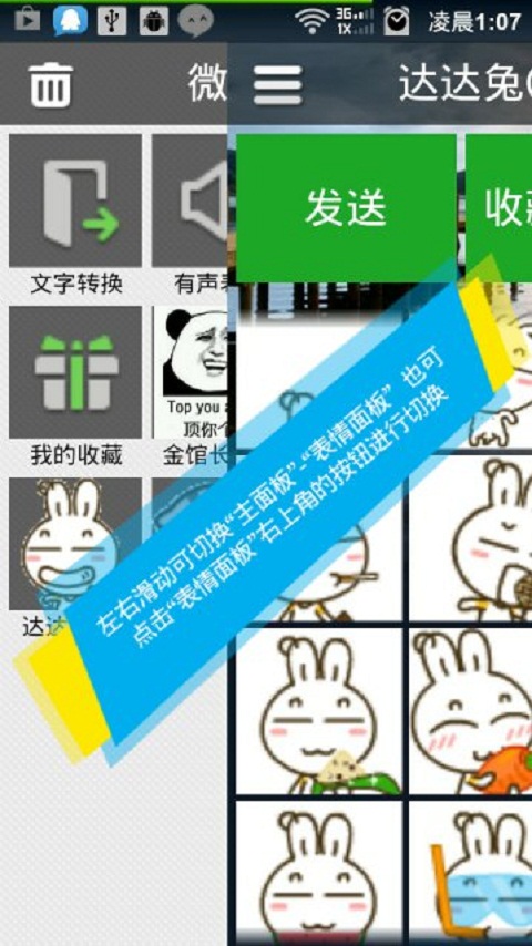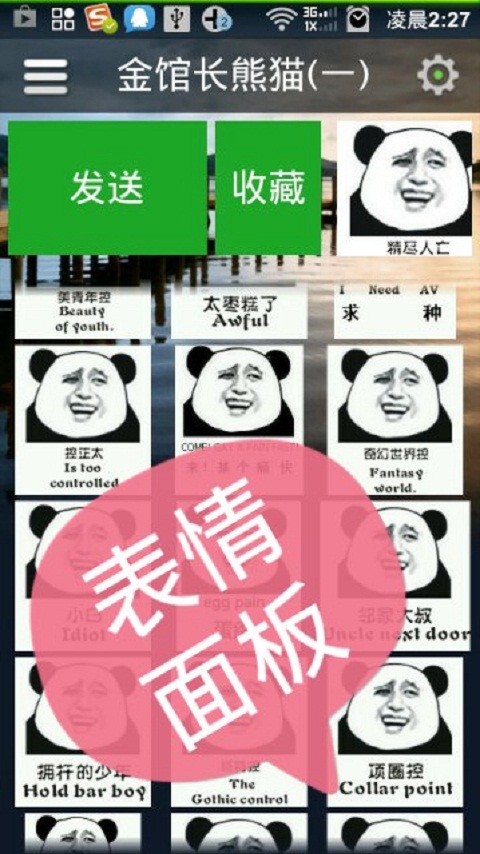 现在已收录表情有“黄小脸”--恶搞QQ经典表情、“金馆长熊猫表情”--是使用暴走漫画制作器制作而成的,相信你一定会喜欢、“王尼玛”、“冷兔”等几十套表情,以后会不定期添加新的表情,请留意微信幻字的表情库!