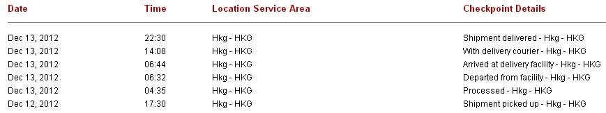 然后你就等吧,要在工作日时,苹果就会确认你的信用卡信息,只要所有的都对应一致,有现货当天就会立即发货,效率相当的高,付运公司是DHL,以下是运送信息,和顺丰一样的办事效率,隔天到。