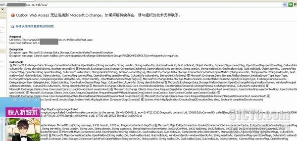 最近有同时反映无法登陆到owa了,出现了“Outlook Web access无法连接到microsoft Exchange”,如下图所示: