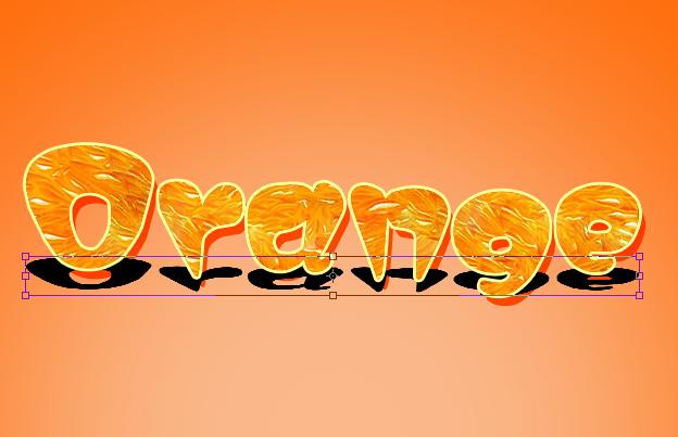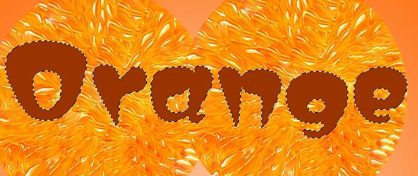 、用套索工具扣出鲜橙肉,放在文字底下。按住ctrl点击文字图层,调出文字选区。右键击“反选”。然后选中鲜橙肉图层按delete.将不需要的去除。把鲜橙肉层置顶。效果如下图