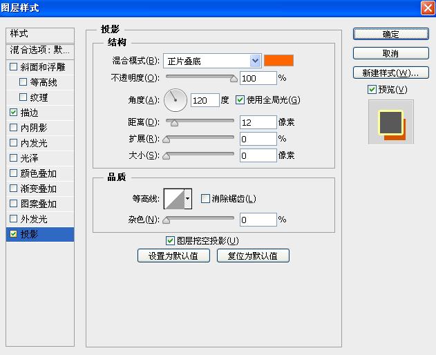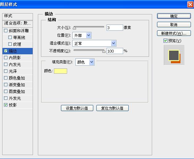 5、选择文字图层,双击调整图层样式,对描边和投影进行调整。参数设置如下图