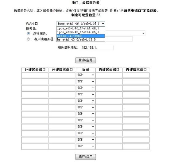 4 得到图表界面 关键词:WAN口 服务器IP地址 外部端口 内部端口 协议
