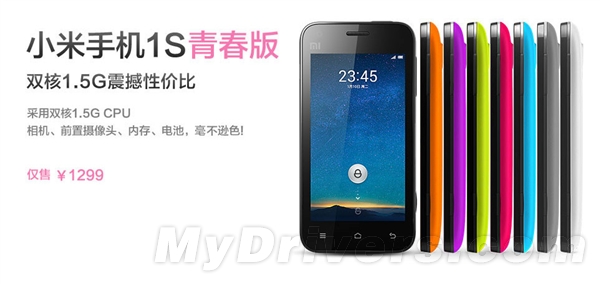 小米1S青春版采用一块分辨率为854×480的4.0英寸触控屏,支持10点触控,配备了一颗高通MSM8260双核1.5GHz处理器,内置1GB RAM以及4GB机身存储空间,此外还配备了一颗800万像素背照式主摄像头以及一颗200万像素前置摄像头,电池容量为1930mAh,售价1299元。
