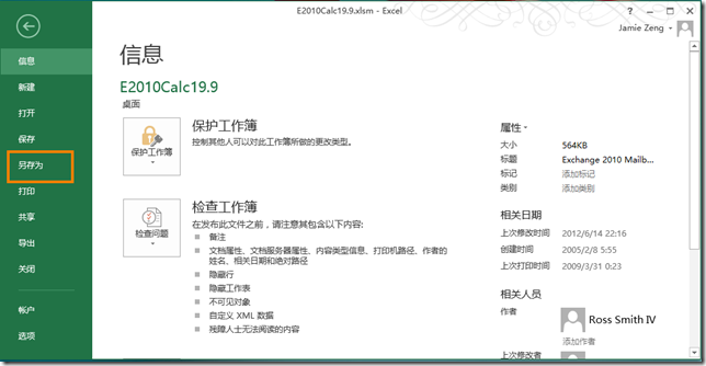 在另存为选项卡中,选择的保存位置为“Jamie Zeng的SkyDrive”,如图。