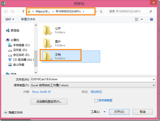 将excel文件保存到skydrive在文档文件夹中,如图。
