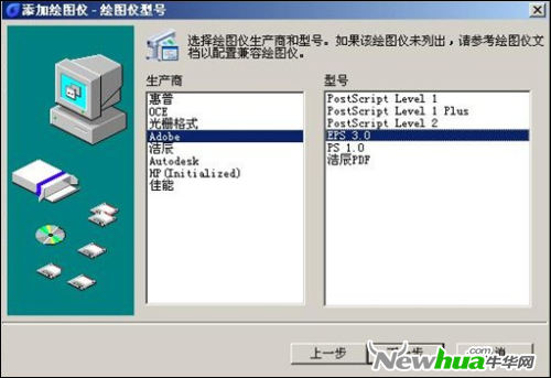 接着,我们就需要添加打印驱动了,如果无法添加驱动请下载unidrv.hlp下载。以添加一个eps打印驱动为例:在打印机下方,通过添加绘图仪,进入到驱动厂商所提供的驱动选择,例如在adobe里面选择了eps打印的驱动,这样就可以将其添加到打印机选择项里,如下图所示: