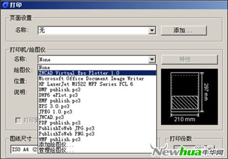 若需要打印图纸文件,我们可以通过快捷键“ctrl+p”调出浩辰打印界面。在打印机下拉框中,软件提供了多种现成的打印驱动,可以直接使用。除此之外,我们还可通过添加绘图仪功能,调出多种软件内置的驱动。