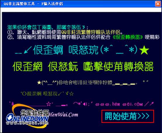 怎么在QQ上打出非主流繁体字呢?今天,小编就为大家介绍一款可以非常实用的软件,无论你使用什么样的输入法、玩什么样的游戏、聊QQ、上MSN、跳劲舞团、写日志,只要使用QQ非主流繁体字输入法,都能配合你喜欢的任意中文输入法打出打出精彩的非主流繁体字哦!
