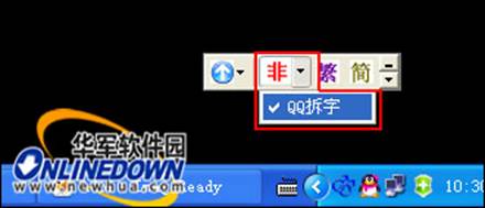 我们还可以使用非主流不拆分效果,单击“非”字图标右侧的倒三角按钮,将弹出QQ拆字选项前面的勾号去掉即可使用非主流不拆分效果。