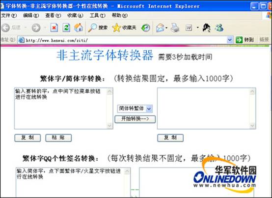 单击开始使用按钮以后,打开一个非主流字体转换器网页,在此进行非主流字体转换。不过这种方法不如直接输入来得方便快捷。
