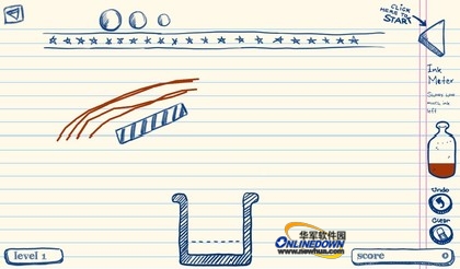 这是一款涂鸦风格的物理小游戏,玩法很简单,就是想办法让小球落进下面的杯子里,只要达到标准线就算通关了。墨水是有限的,所以不能浪费了,要用在刀刃上。