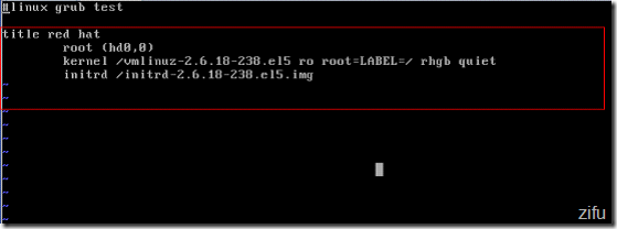 如下,是我手工写的一个grub.conf文件,你也可以自行定义其内容,只要可以让系统正常启动。