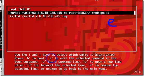 Grub > kernel /vmlinuz-2.6.18-238.el5 ro root=LABEL=/