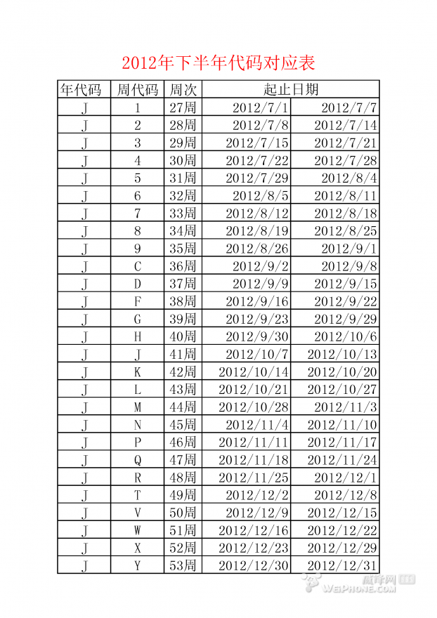 2、表格对应的是2012年下半年,就是年代码是J。因为iphone5是从9月才发售的,所以只列示了下半年的。至于其他时间的,大家自己算就可以了。