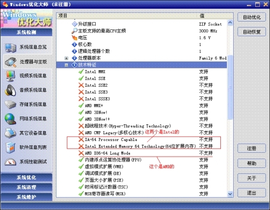 在下图所示的位置只要有一个为支持,则你的CPU是64位的。