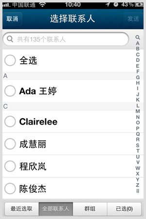 iphone用QQ通讯录群发短信的步骤: