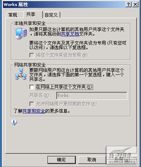 如果用户仅仅想共享文件,不希望他人修改共享的文件夹及其中的文件,请不要启用“允许网络用户更改我的文件”选项。因为启用了该选项之后,网络用户可以向共享的文件夹写入文件,也可以删除共享文件夹中的所有内容。