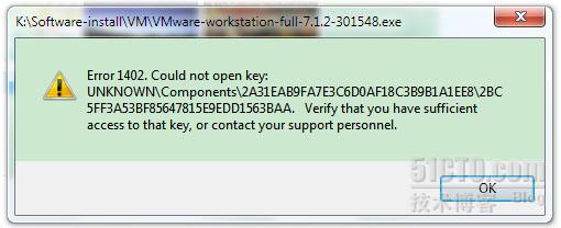 结果安装的时候继续报错,error 1402 could not open key:unknown\components\DA42BC。猜测是不够权限修改注册表,于是点击“以管理员身份运行”,无果。上面那12步没做好,反复3-4次依然不行,于是继续发挥百度精神,原来是没有注册表修改权限,不怕麻烦,继续倒腾。(就是不想重装系统或者还原什么的。)