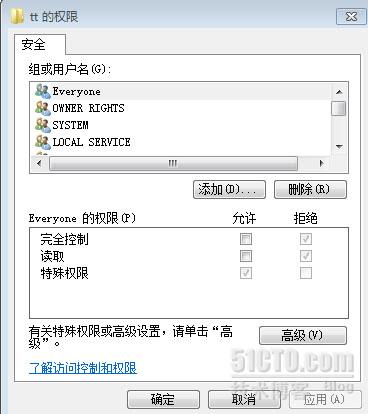 3、想要添加Everyone的权限,却发现“组或用户名”里什么也没有。如下图: