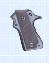这里跟大家说一下把手上纹理的制作,建立一个位图图层,调出把手选区填充黑色,添加滤镜杂色(单色),然后“画笔描边”——“阴影线”,然后调整图层混合模式为滤色并调整透明度。通过通道把白色的线条选区调出来后CTRL+J单独复制一层,在复制的这一层上添加投影。扳机的制作就很简单了,形状的构成就是应用形状的加减法等,最后加上图层样工即可。