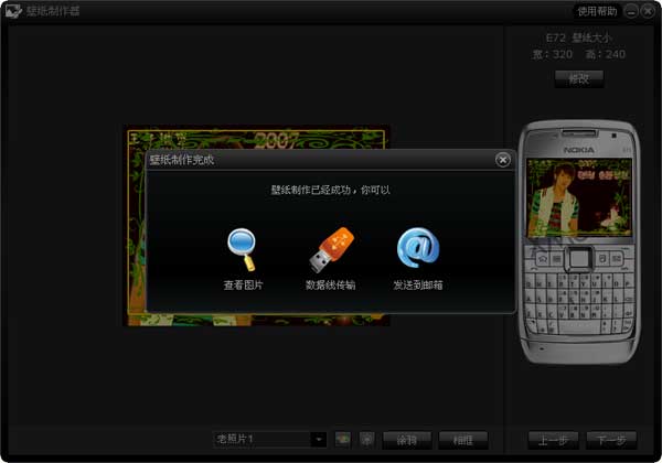 最后你可以查看壁纸、传输到手机(数据线连接电脑)或者发送到手机邮箱中