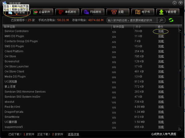 当然如果看完了的电子书或者没用的软件我们可以点击“程序管理”来卸载哦,省出更多空间呢,如图