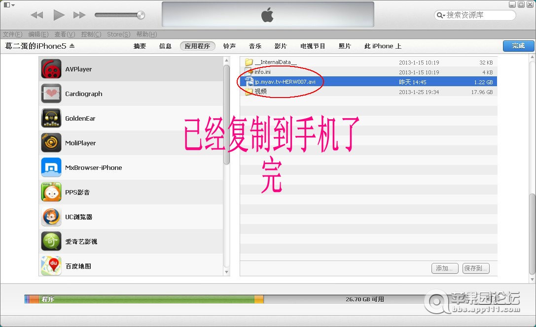 第一步:当然是手机上安装AVplayer,电脑上安装iTunes。