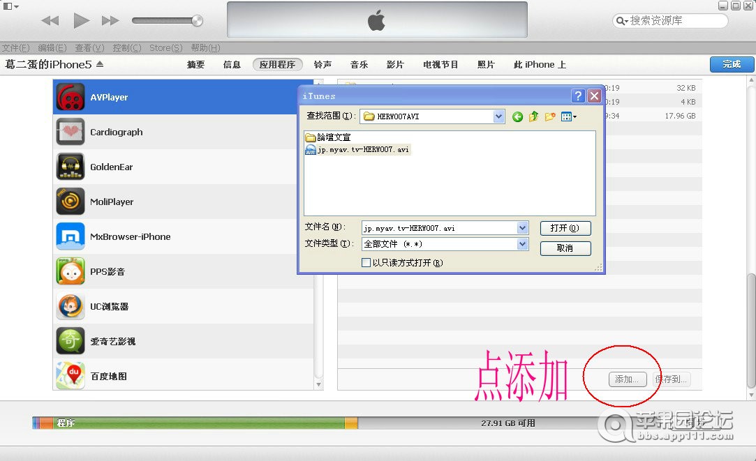 点击将想添加的文件,譬如下图添加的是葛二蛋的iphone5: