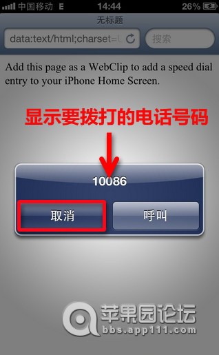 如果按下呼叫按钮就会直接拨打电话出去咯,但是我们的目的是要将其设置为图标热键以便一键拨号,所以此步骤先点击取消按钮。