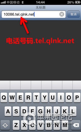 第二步:在地址栏输入:你要拨打的电话号码.tel.qlnk.net(这里以10086为例)