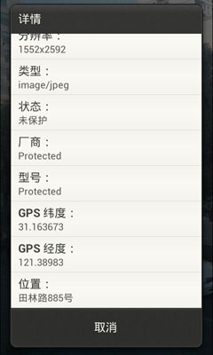 注:在这里我们如果需要得到一些精准的含地理位置信息的照片需要在室外才能获得到。如下图所示: