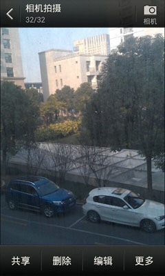 第三步:我们打开来自相册里的照片就能够看到我们刚刚拍好的照片都在这里面,选中我们刚刚拍的那张照片,看到照片下面有4个按钮,分别是返回、微博分享、删除、查看照片所在地图位置。当我们需要按照照片给我们的地理位置进行导航,我们只要点照片上的导航按钮即可进行导航,也可以进入查看照片所在地图位置的界面点击导航。如下图所示: