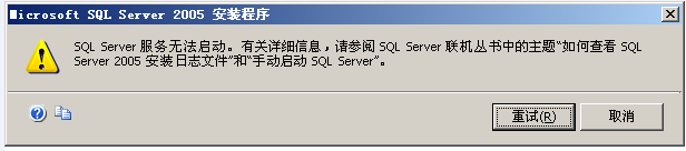 安装时出现了如下错误:SQL Server 2005 安装错误码29503。产品: microsoft SQL Server 2005-- 错误 29503。SQL Server 服务无法启动。有关详细信息,请参阅 SQL Server 联机丛书中的主题“如何查看 SQL Server 2005 安装日志文件”和“手动启动 SQL Server”。详情看图: