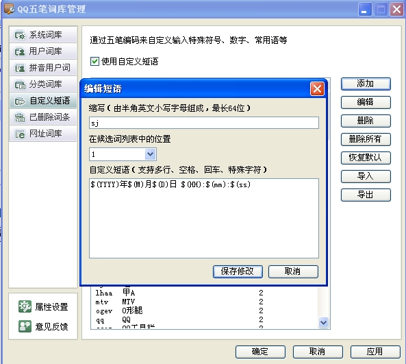 选择词库管理→自定义短语: