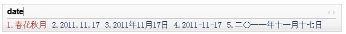 在五笔中输入time 则显示时间,输入date 则显示日期。如下图所示: